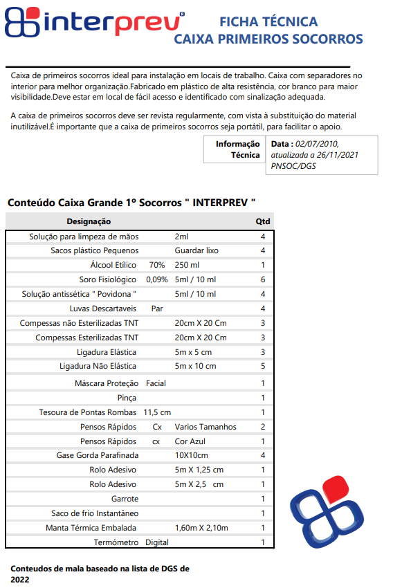 CAIXA PRIMEIROS SOCORROS GRANDE - INTERPREV