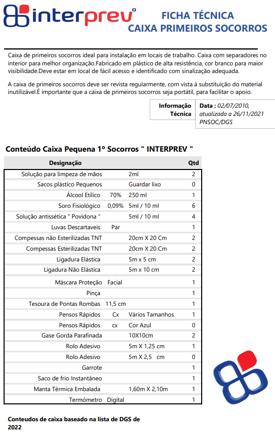 CAIXA PRIMEIROS SOCORROS PEQUENA - INTERPREV