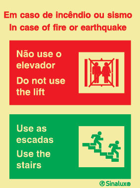 Sinalização para elevadores, escadas mecânicas e tapetes rolantes